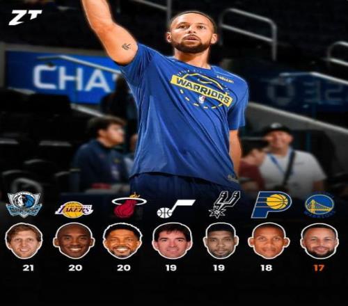 斯蒂芬-庫里即將迎來為勇士隊效力的第17個賽季,他也將成為NBA歷史上第七位,為單一球隊效力超過17年的球員。