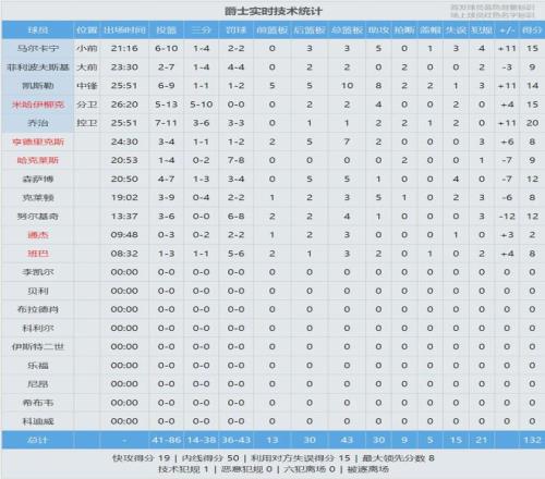全場(chǎng)結(jié)束,爵士132-129戰(zhàn)勝開(kāi)拓者。開(kāi)拓者全隊(duì)38次犯規(guī),兩人6犯離場(chǎng)。最后看看數(shù)據(jù),說(shuō)說(shuō)你的心情: