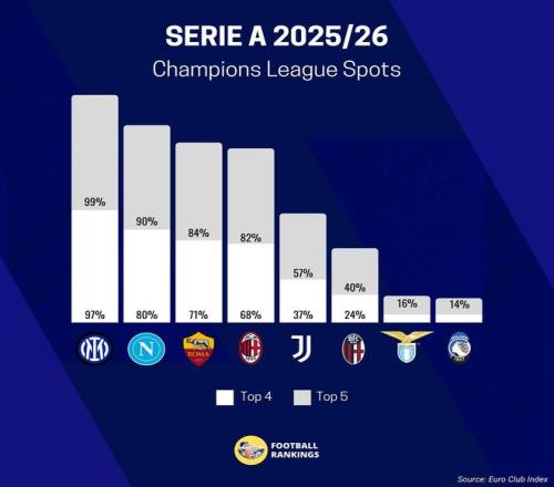 Football Rankings預(yù)測(cè)本賽季意甲前四名概率: