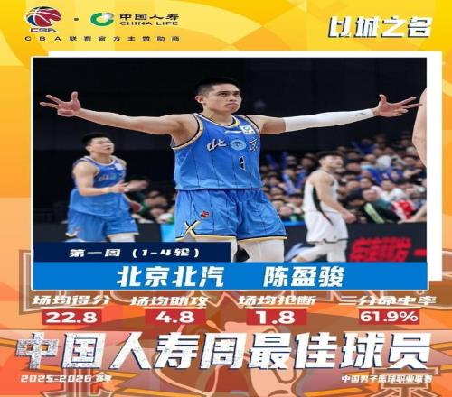 陳盈駿收獲加盟北京男籃后的首次本土周最佳榮譽(yù),也是CBA生涯第4次,前3次均是效力廣州男籃時(shí)期。