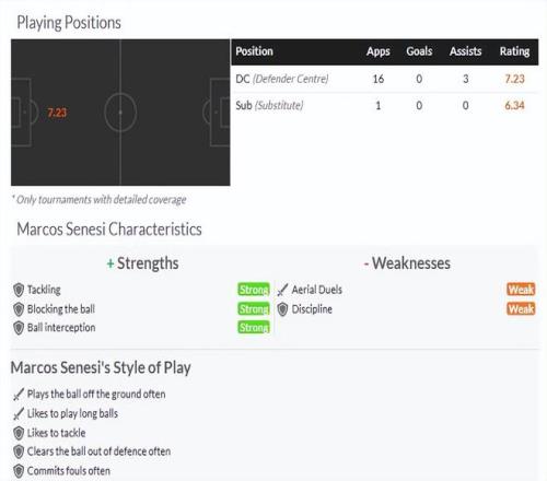 塞內(nèi)西身高1米84,高球爭(zhēng)奪在英超是不占優(yōu),不過(guò)來(lái)到西甲后應(yīng)該還是夠用。他擅長(zhǎng)攔截球,對(duì)于線(xiàn)路的預(yù)判還是不錯(cuò)的。