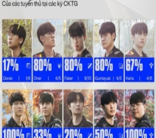 賽事官方統(tǒng)計T1、KT選手參加S賽晉級決賽概率:T1三人80%